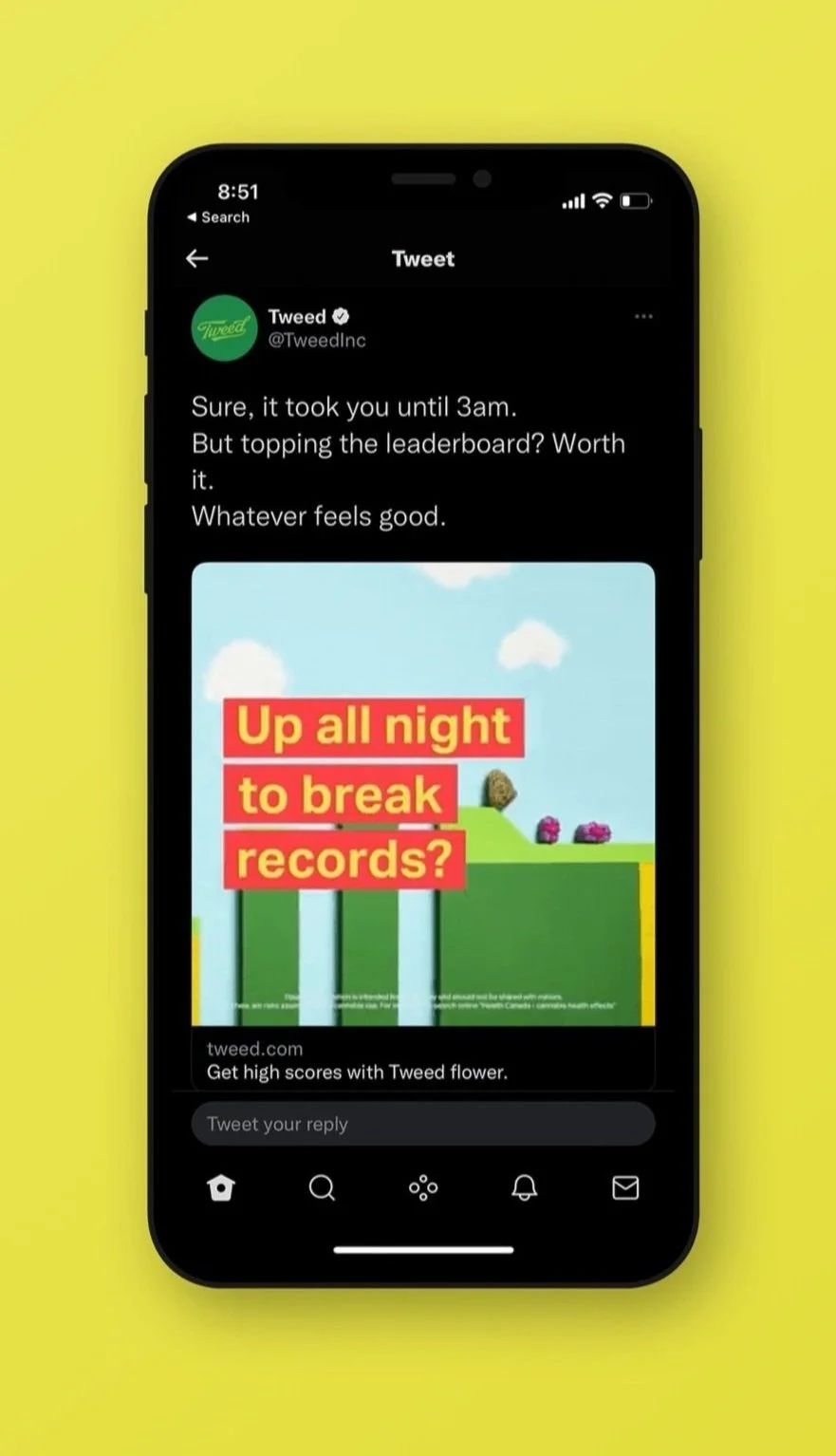 Tweed is “the Budweiser of Cannabis” – an affordable, reliable choice for people who want great quality without the frills. It’s a brand for people who want a consistent bud that doesn’t take itself too seriously.